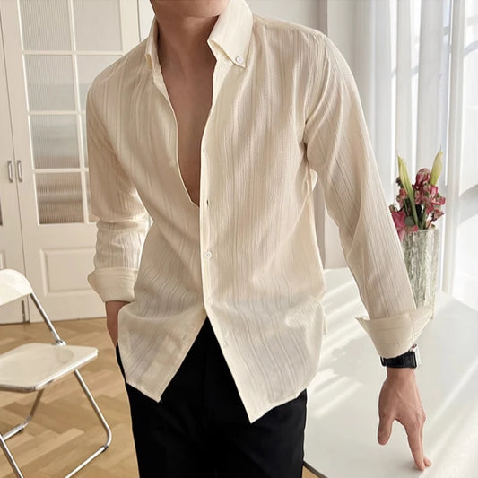 Trendy Stylish Striped No-iron Shirt Autumn Texture Top Korean Version Loose-fit Casual Long Sleeves Shirt For Men
